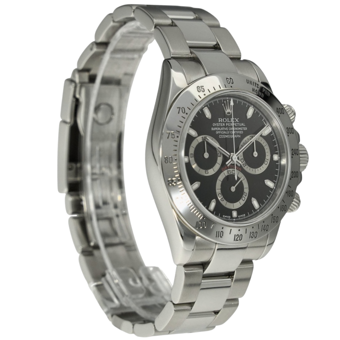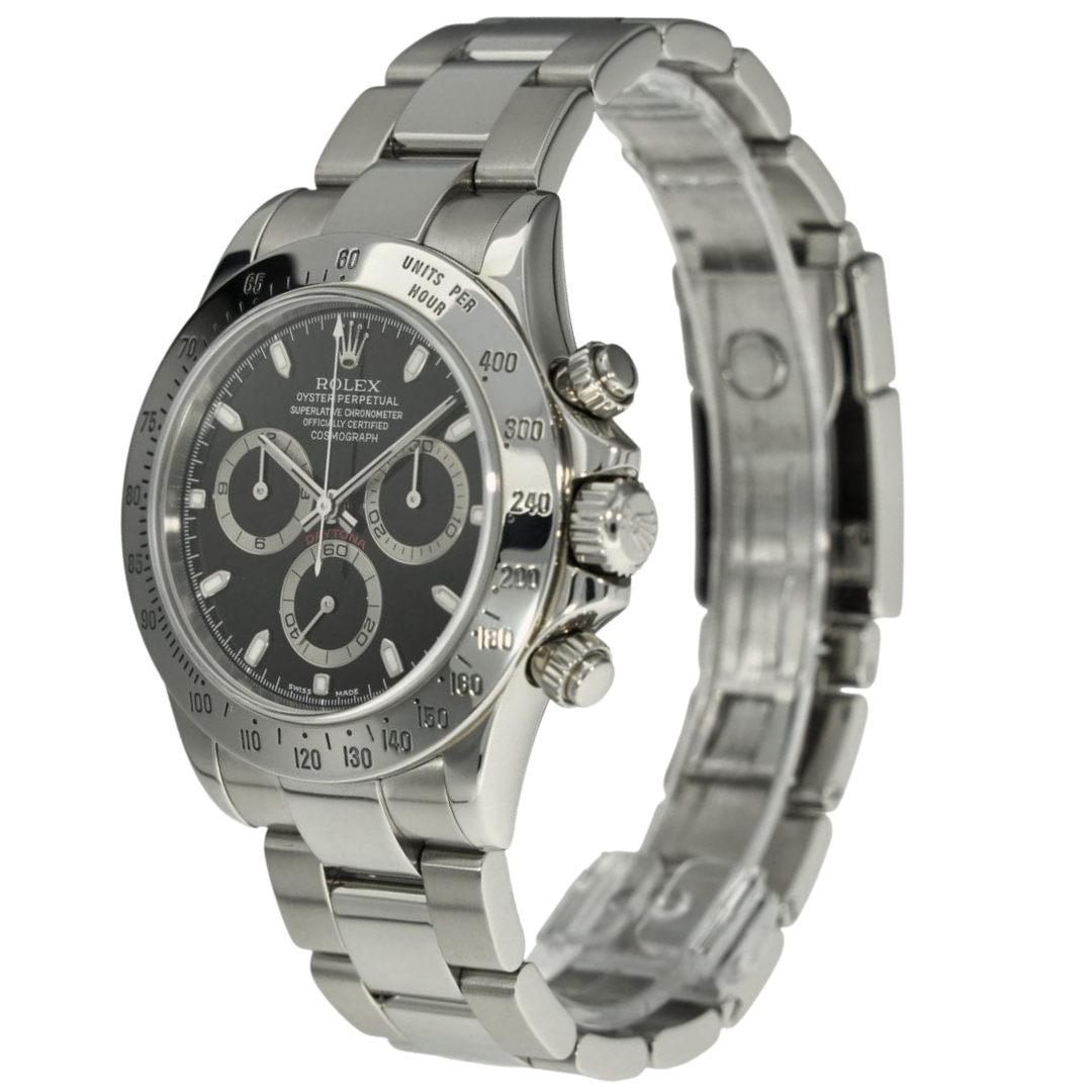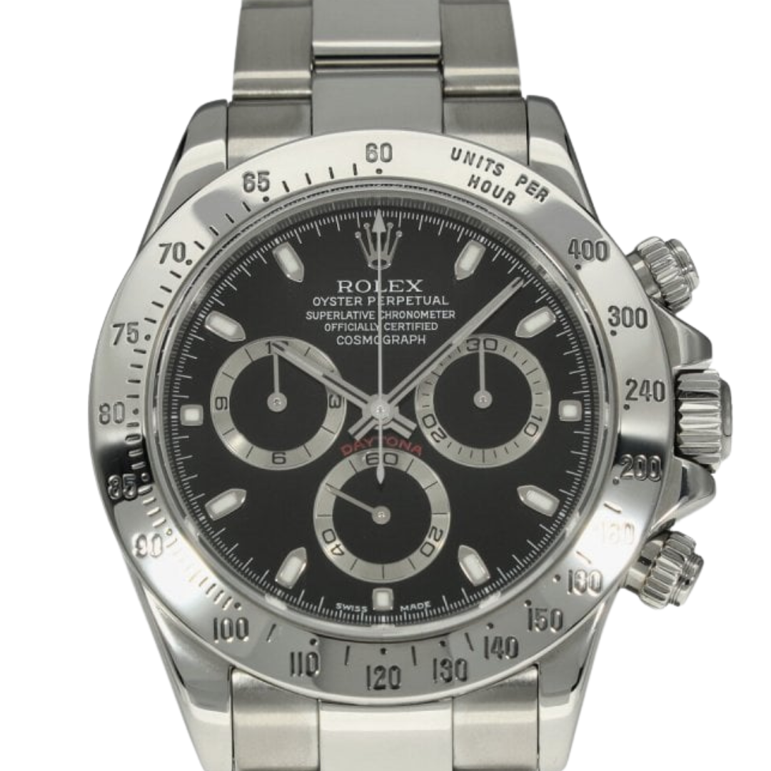 A Rolex Daytona Watch, Stainless Steel on a Black Dial
