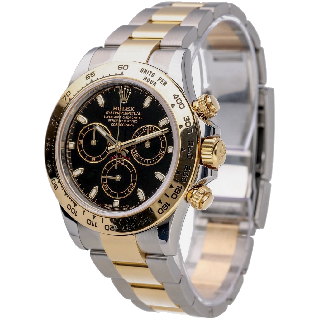 A Bi-Metal Rolex Daytona Watch, Stainless Steel and 18ct Yellow Gold with a Black Dial.