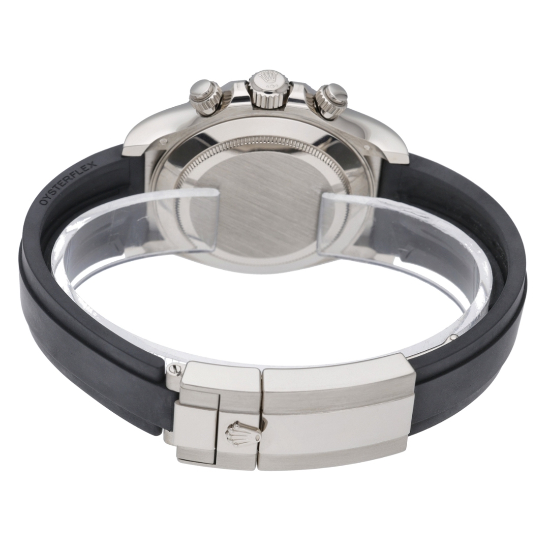 A Rolex Daytona Watch, Black Rubber Strap with an 18ct White Gold Case and Clasp and a Black Bezel on a Steel Dial with Bright Black Counters.