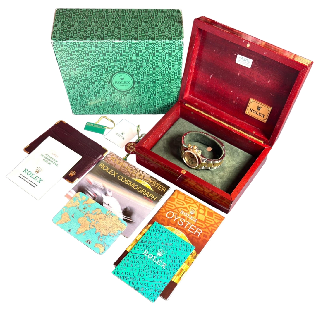 Powered by the revered automatic calibre 4030, this Daytona delivers reliable performance and smooth chronograph operation — a movement long celebrated for its role in redefining the model’s history. The watch remains in good condition for its age, showing honest signs of careful wear while retaining its crisp detailing and warm two-tone character.
