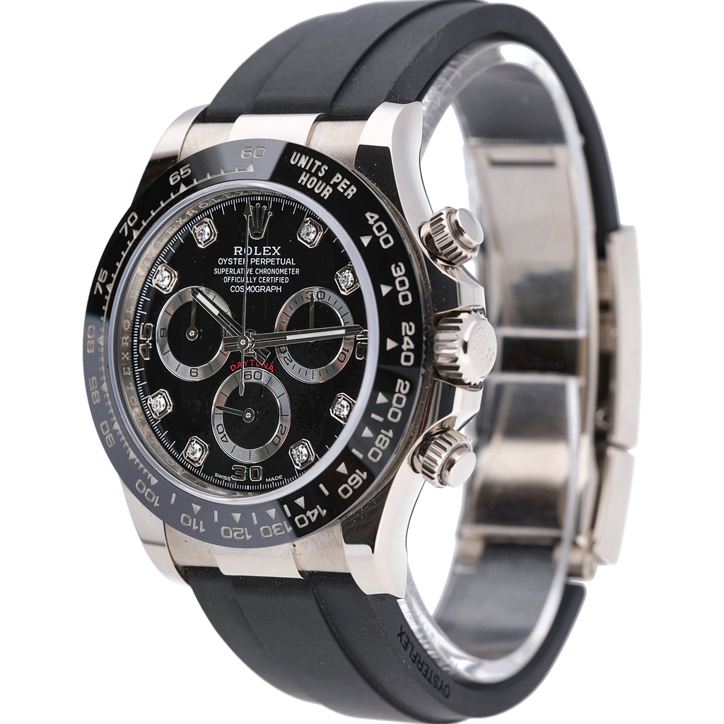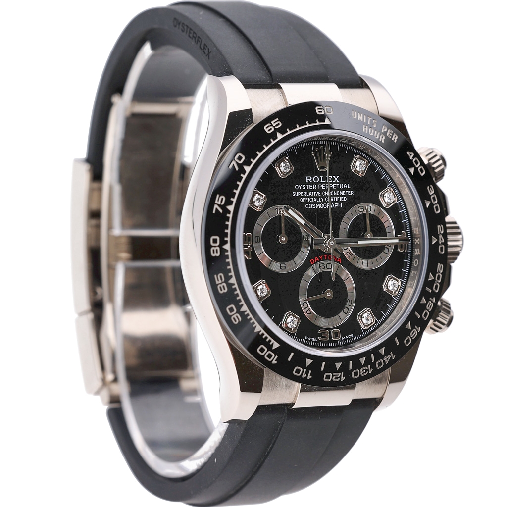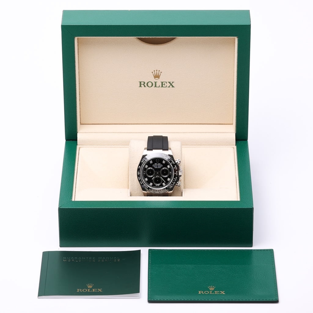 From an appreciation and investment perspective, precious metal Daytona models continue to attract sustained global demand, with Oysterflex configurations proving especially desirable. Factory diamond dial examples add an additional layer of rarity and collectability. This 116519LN represents a highly attractive opportunity to acquire a modern Rolex Daytona with strong long-term value potential and enduring market appeal.