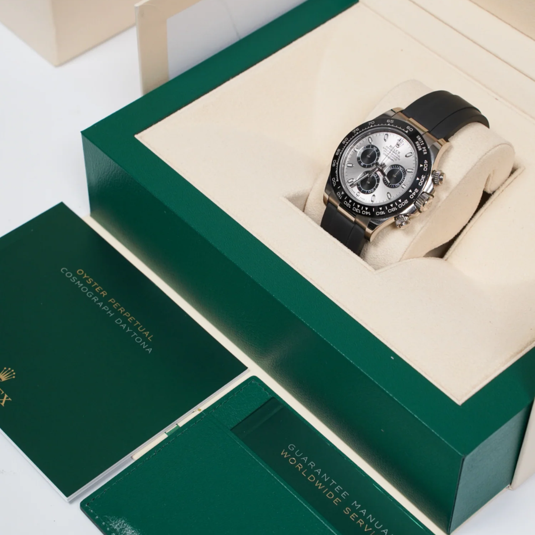 Powered by the Rolex Calibre 4130 automatic chronograph movement, this model offers exceptional precision, a 72-hour power reserve, and outstanding reliability. Its Superlative Chronometer certification ensures consistent performance, while the Oysterflex strap enhances comfort and durability, making it equally suited to daily wear or more considered use.