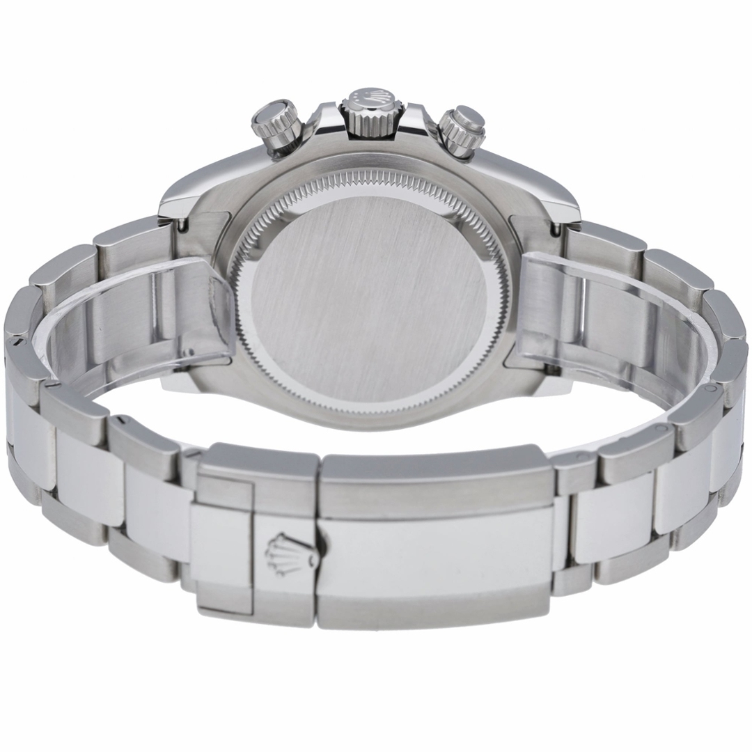 A Rolex Daytona Watch, Stainless Steel with a Black Bezel and a White Dial.
