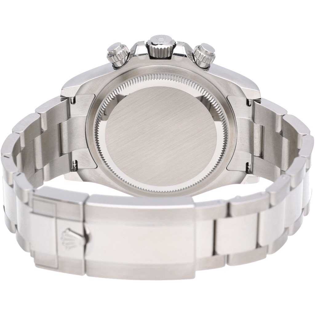 A Rolex Daytona Watch, Stainless Steel with a Black Bezel on a White Dial with Black Subdials