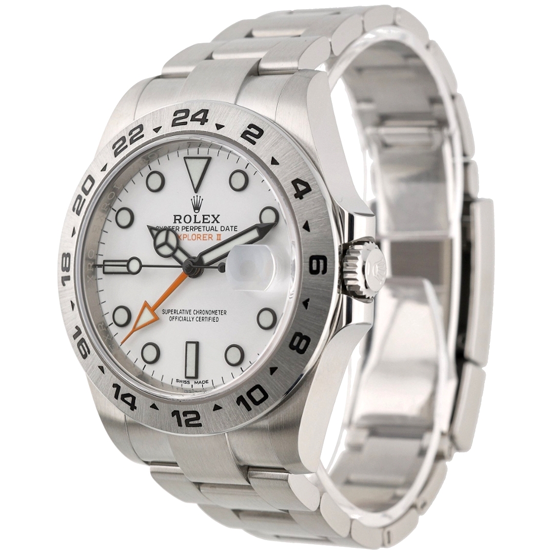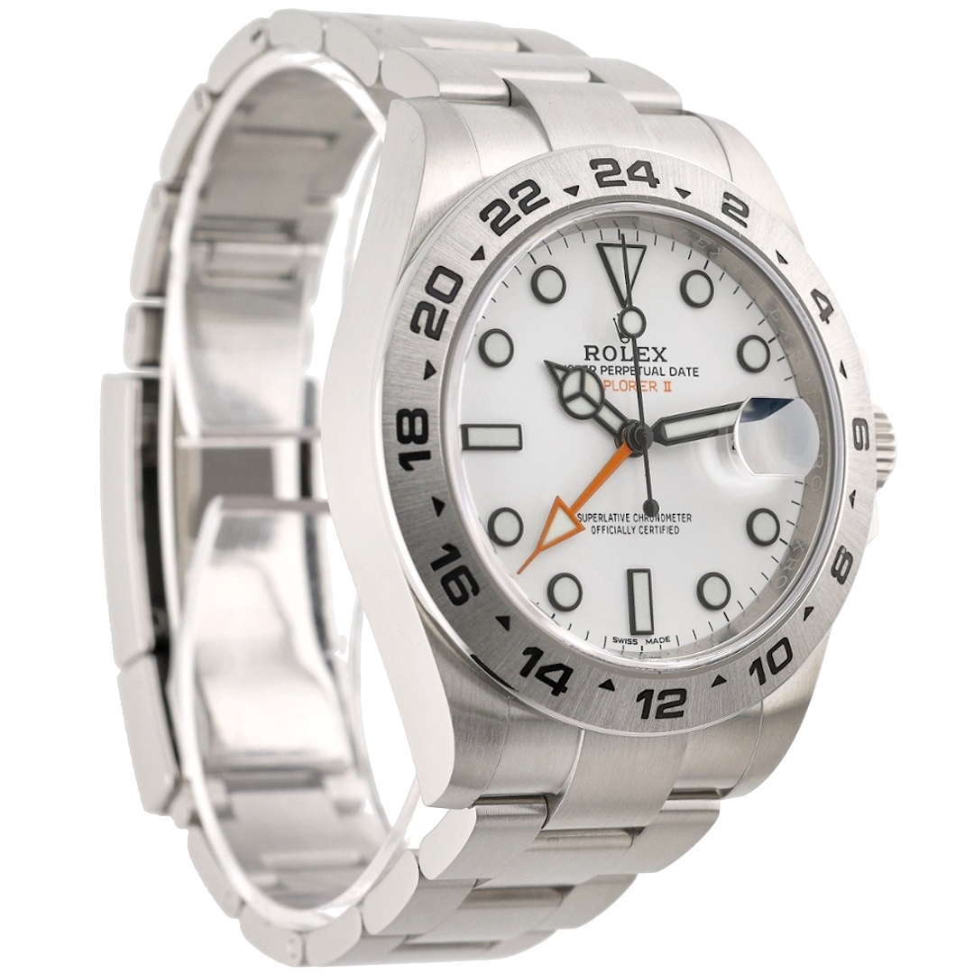 A Rolex Explorer II Watch, Stainless Steel on a White Dial