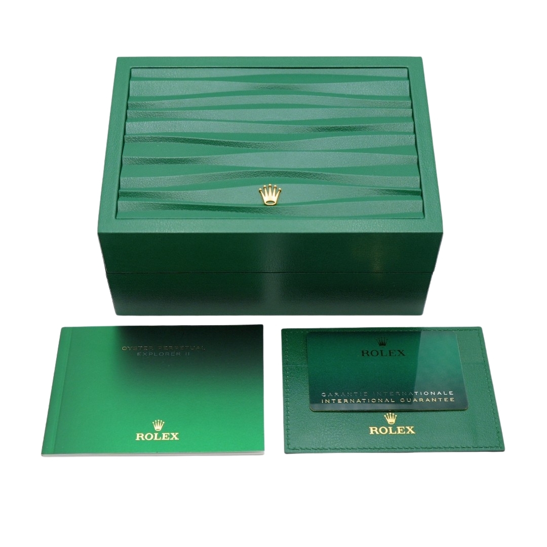 This Explorer II is presented in immaculate condition and comes fully boxed and certified with its original paperwork. Backed by the Rolex Manufacturer Warranty until 2031, it offers both professional functionality and refined Rolex craftsmanship—making it an ideal companion for both seasoned adventurers and discerning collectors alike.