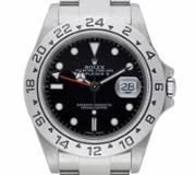 A Rolex Explorer II watch is a robust and highly legible tool watch, originally designed for explorers and professionals operating in extreme conditions. Crafted from stainless steel, the 42mm case delivers a strong wrist presence while maintaining the clean, functional aesthetic the Explorer line is known for. The black dial is clear and purposeful, featuring luminous hour markers, Mercedes hands, and the distinctive orange 24-hour hand, paired with a fixed steel bezel engraved with a 24-hour scale for day and night indication.