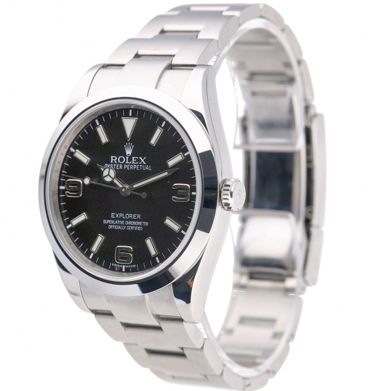A Rolex Explorer watch crafted in stainless steel, featuring the classic black dial that has become synonymous with Rolex’s legacy of adventure and precision. Model number 214270, this 2011 example is powered by the Rolex Calibre 3132 automatic movement, offering outstanding reliability, accuracy, and resistance to shock and magnetism. The 39mm Oyster case provides the perfect balance between contemporary presence and traditional design, making this reference a modern classic within the Explorer lineage.