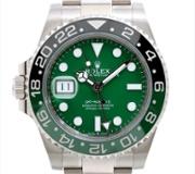 A Rolex GMT-Master II Watch, Stainless Steel with a Black & Green Bezel on a Black Dial