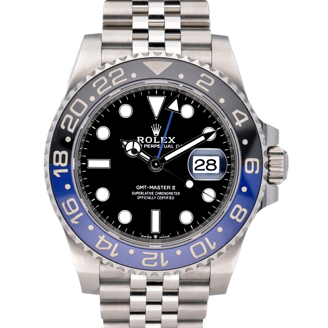 A Rolex GMT-Master II Watch that perfectly fuses bold style with world-time functionality, this 2024 model 126710BLNR—fondly nicknamed the "Batgirl"—is a standout in Rolex’s modern GMT lineup. Crafted from resilient Oystersteel, the 40mm case is paired with the instantly recognisable black and blue Cerachrom bezel, representing day and night across two time zones.