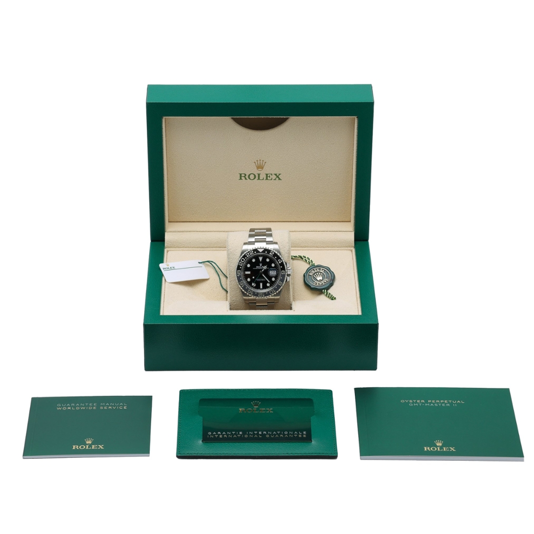 Designed for world travellers and aviation professionals, this 40mm model showcases Rolex’s innovative dual-time functionality via the bold green GMT hand, allowing the wearer to track two time zones simultaneously with ease and precision. The watch is fitted with the Oyster bracelet—renowned for its comfort.