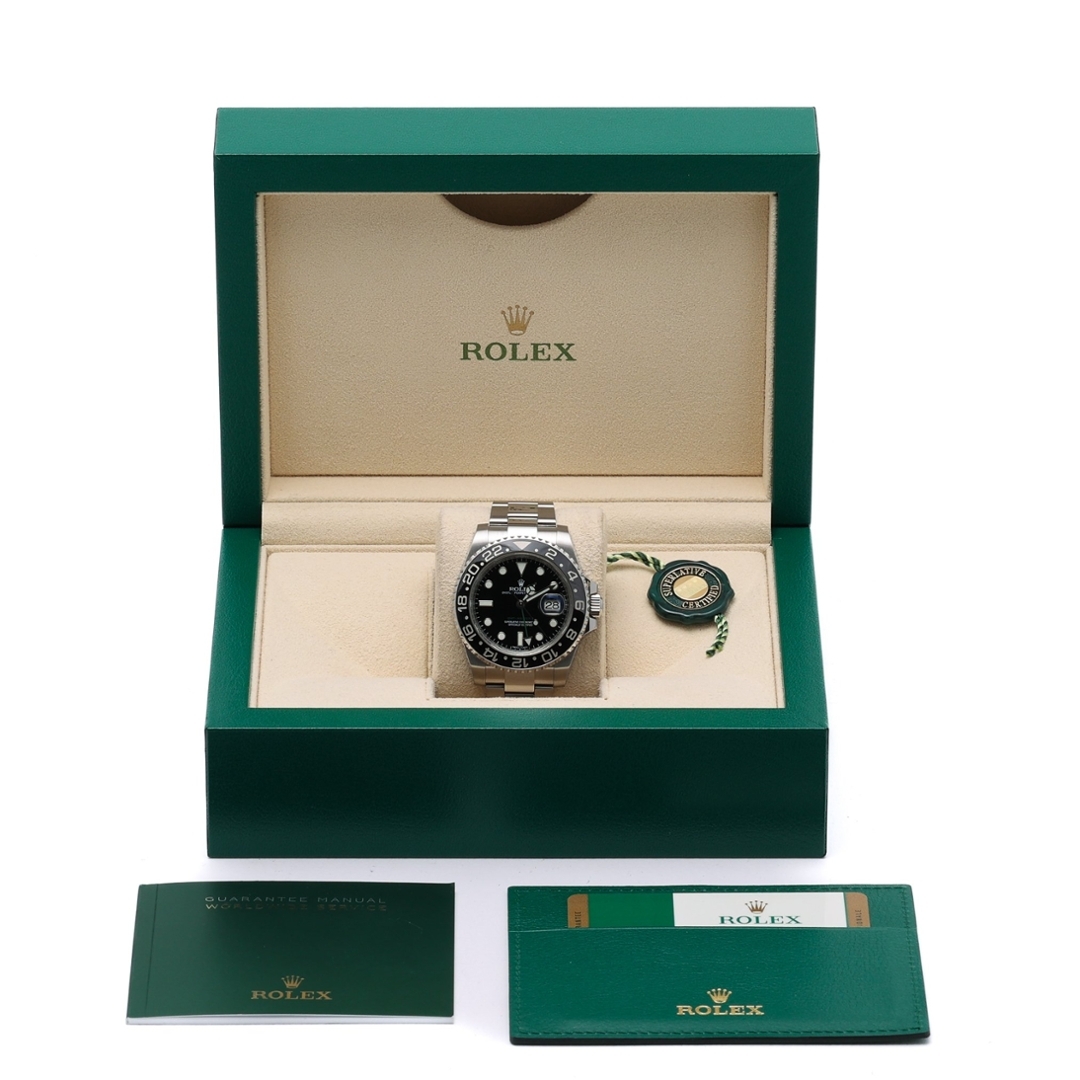 From an investment perspective, the Rolex GMT-Master II is highly regarded in the luxury watch market. Rolex watches are known to appreciate in value over time, particularly models like the GMT-Master II, which hold their allure due to their iconic status and robust design. The immaculate condition of this watch, along with its complete set of original documentation, significantly boosts its investment potential.