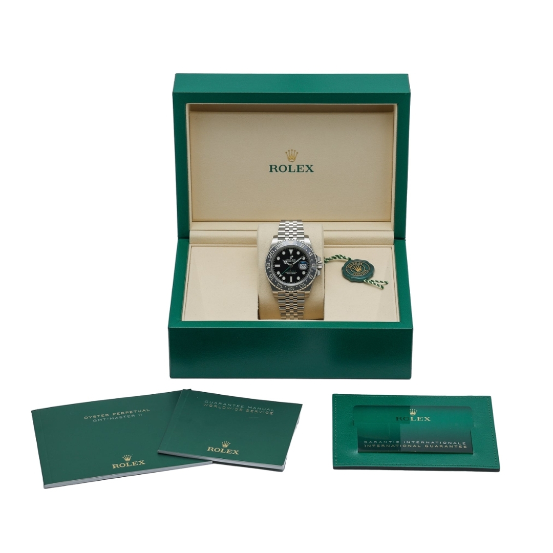 From an investment perspective, newly released stainless steel GMT-Master II references continue to attract significant demand due to limited availability and global waiting lists. The GRNR’s understated colourway enhances long-term desirability. Supplied boxed and certified with original full set paperwork and Rolex manufacturer warranty remaining until 2031, this watch represents a strong modern Rolex investment.