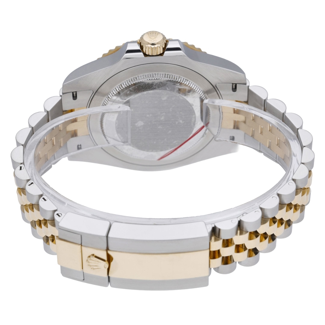 Its automatic movement ensures precision and reliability, a hallmark of Rolex's renowned craftsmanship. The black bezel with 24-hour graduations allows tracking multiple time zones, a nod to the watch's origins as a tool for international pilots. The 18ct yellow gold accents on the case, bracelet, and crown contrast beautifully with the stainless steel, adding a touch of luxury without compromising durability.