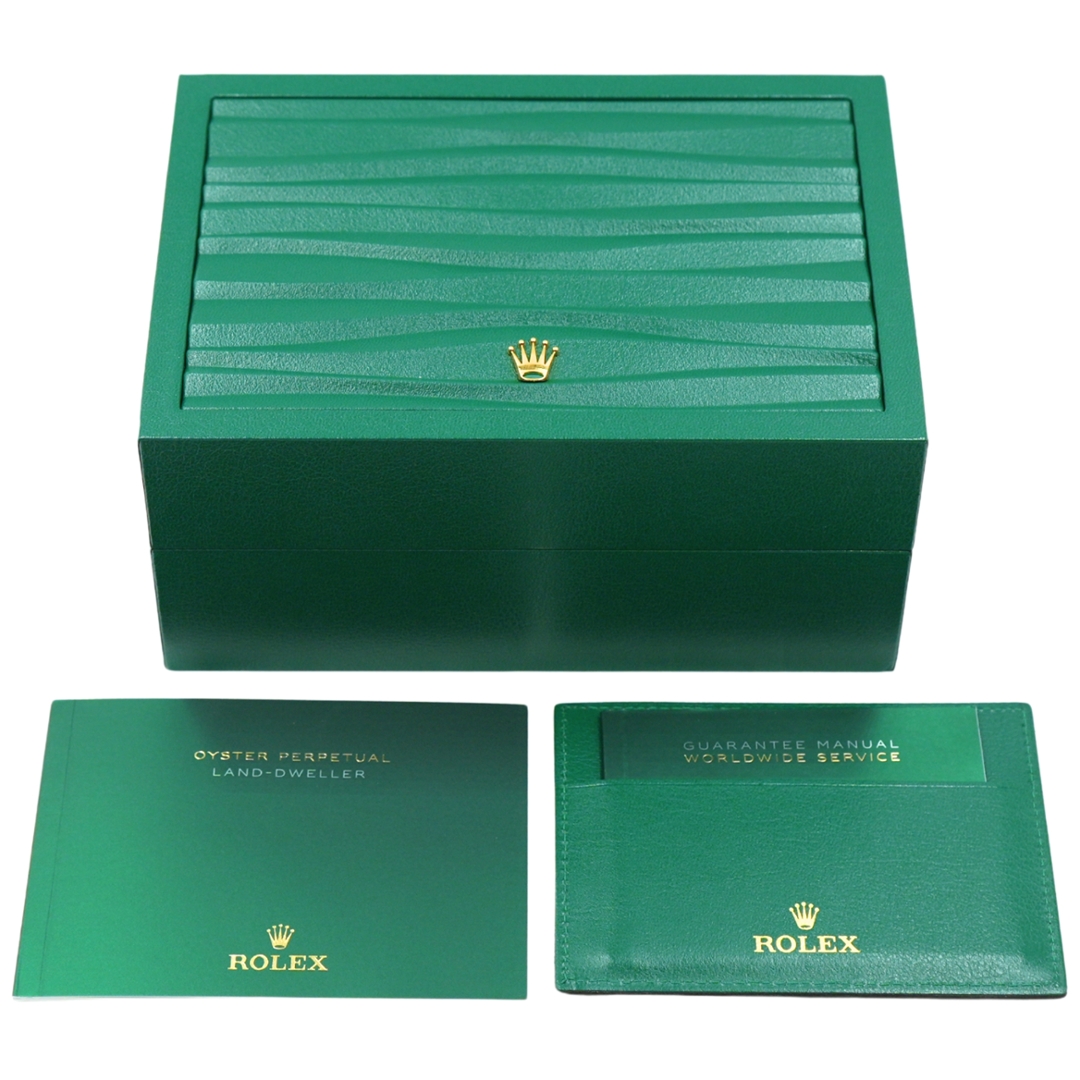 At its core is the Rolex Calibre 7135 automatic movement, developed specifically for the Land-Dweller and marking a notable technical evolution within the brand’s catalogue. As a Superlative Chronometer, it delivers exceptional long-term reliability and precision, reinforcing its positioning as a serious, modern Rolex rather than a cosmetic variation. Full manufacturer warranty remains until 2030, supported by the original full set of paperwork.