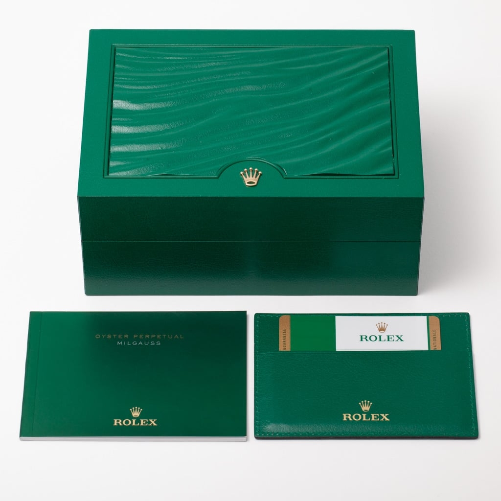 Described as being in immaculate condition, this Milgauss exemplifies meticulous care and maintenance, reflecting the enduring quality and craftsmanship inherent in Rolex timepieces. Backed by a 12-month WLC warranty and accompanied by the original full set of paperwork, boxed and certified, this watch offers both assurance and authenticity to its discerning owner.