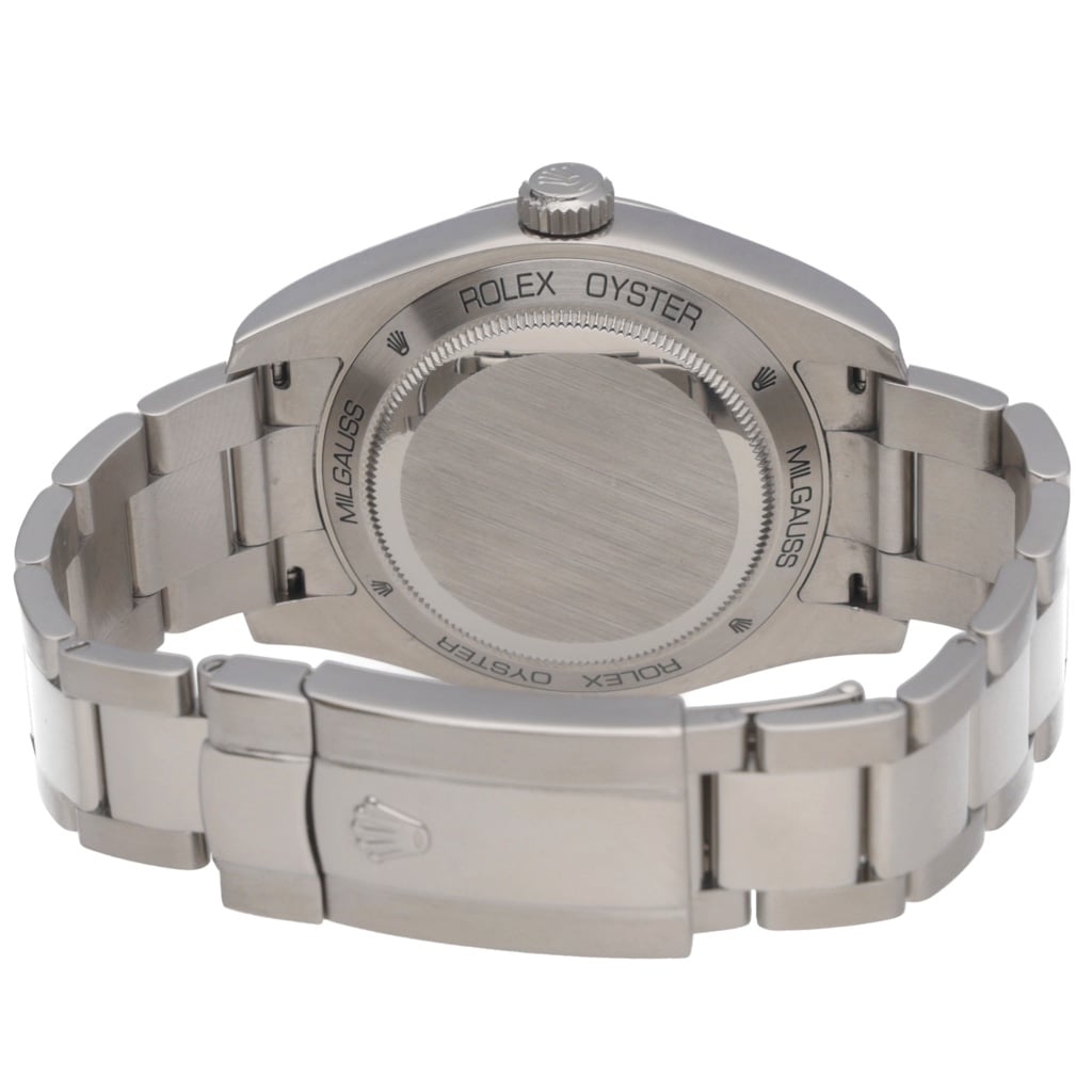 A Rolex Milgauss Watch, Stainless Steel with a Black Dial.