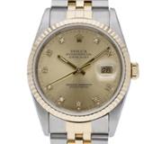 Powered by a reliable Rolex automatic movement, this watch delivers smooth, precise timekeeping and mechanical dependability. The salmon dial is rare and striking, offering a soft, elegant tone that shifts beautifully in changing light. Diamond hour markers bring a touch of sparkle, while the yellow gold bezel, set with high-quality aftermarket diamonds, adds brilliance and distinction to the overall design.