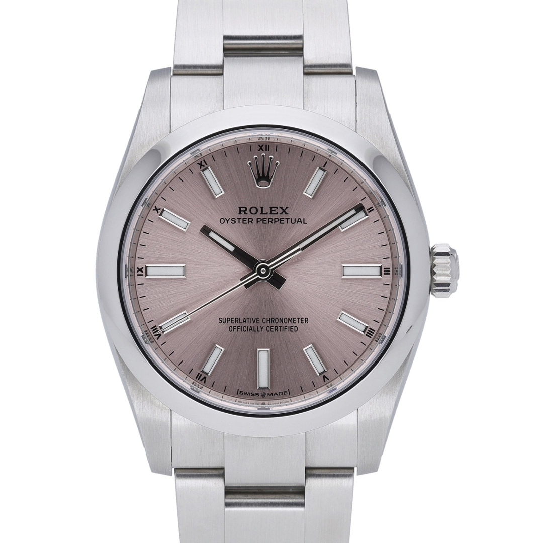 A Rolex Oyster Perpetual, model 124200, is the embodiment of timeless simplicity and enduring Rolex quality. Crafted entirely from stainless steel, this 34mm model showcases a sleek, balanced design that exudes understated sophistication. The pink sunray-finish dial adds a soft, contemporary touch, enhanced by white gold baton hour markers and matching hands that ensure exceptional clarity and elegance. Its minimalist aesthetic captures the spirit of Rolex’s original Oyster design — a perfect fusion of form and function.
