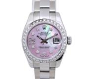 A Rolex Oyster Perpetual Watch, Stainless Steel on a Pink Dial