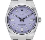 A Rolex Oyster Perpetual Watch, Stainless Steel on a Lavender Dial