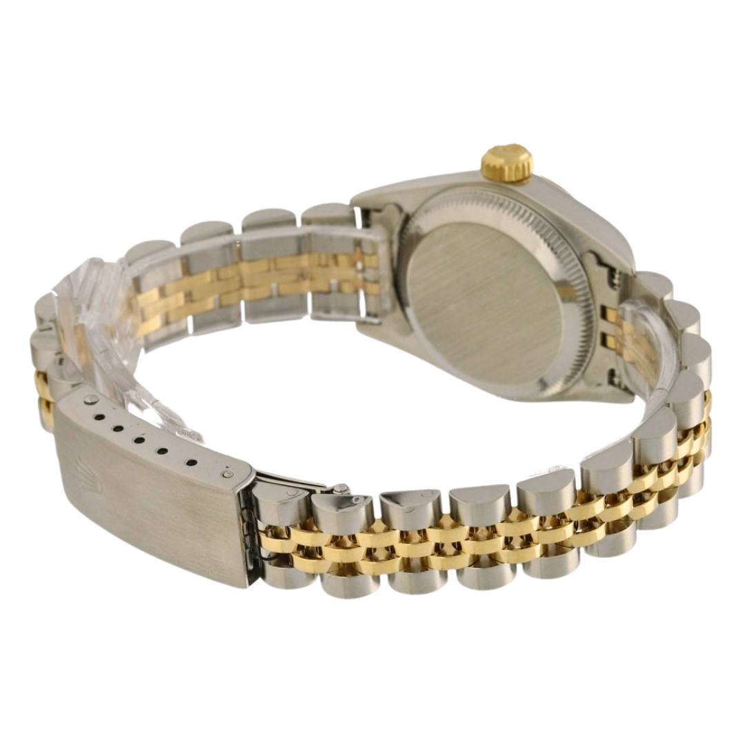 A Rolex Oyster Perpetual reference 67193, crafted in stainless steel and 18ct yellow gold, presented with a crisp white dial and the brand’s signature fluted bezel in yellow gold. This example showcases the timeless elegance of Rolex’s classic ladies’ Oyster design, combining the durability of stainless steel with the warmth and refinement of solid gold accents. The white dial offers excellent clarity, complemented by Roman numeral hour markers and gold hands, creating a balanced, traditional aesthetic. The 26mm Oyster case maintains a refined and versatile presence on the wrist.
