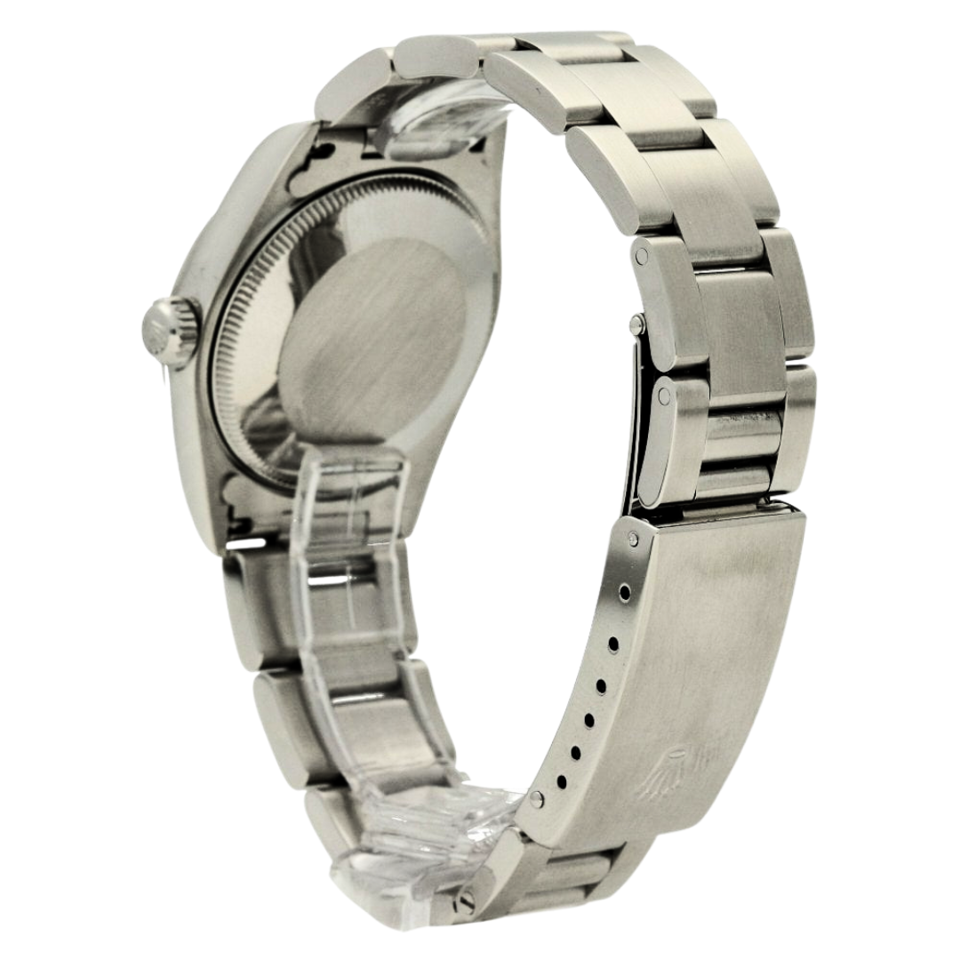 Powered by a Rolex automatic movement, offering reliable precision and durability. The 31mm case size provides a comfortable and classic wrist presence, sitting neatly between traditional ladies’ and midsize proportions, ideal for those seeking understated elegance with everyday practicality.