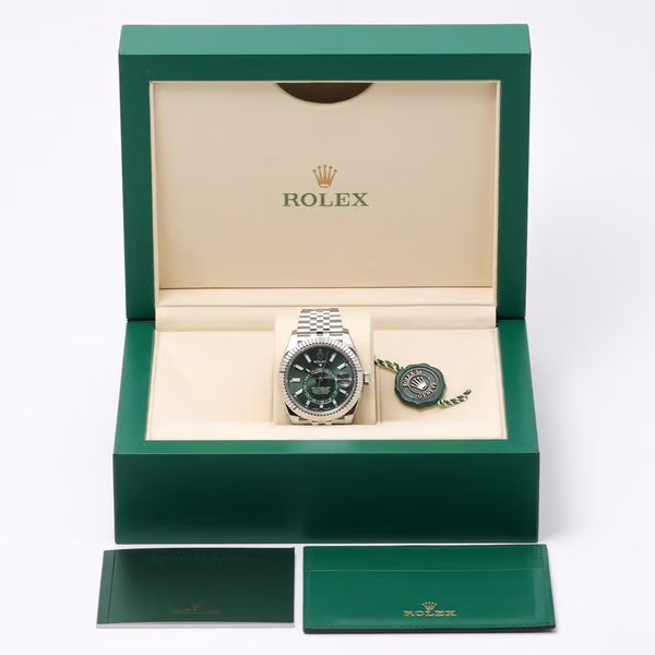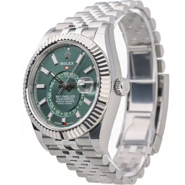 The Rolex Sky-Dweller 336934 stands out not just for its aesthetic appeal but also for its strong investment potential. Its unique combination of stainless steel, white gold, and a rare green dial ensures it will remain a coveted piece. The advanced features, luxurious materials, and impeccable design make it a standout in the market. For those seeking both a stylish accessory and a valuable investment, this timepiece offers a perfect blend of elegance, functionality, and financial growth potential, securing its place as a prized asset in any sophisticated collection.