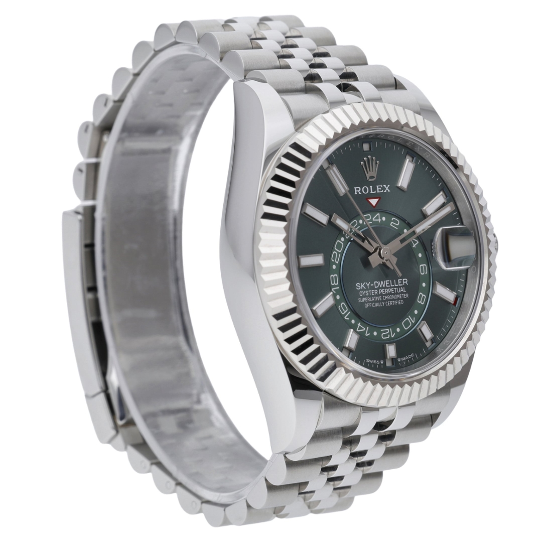 The Rolex Sky-Dweller 336934 stands out not just for its aesthetic appeal but also for its strong investment potential. Its unique combination of stainless steel, white gold, and a rare green dial ensures it will remain a coveted piece. The advanced features, luxurious materials, and impeccable design make it a standout in the market. For those seeking both a stylish accessory and a valuable investment, this timepiece offers a perfect blend of elegance, functionality, and financial growth potential, securing its place as a prized asset in any sophisticated collection.