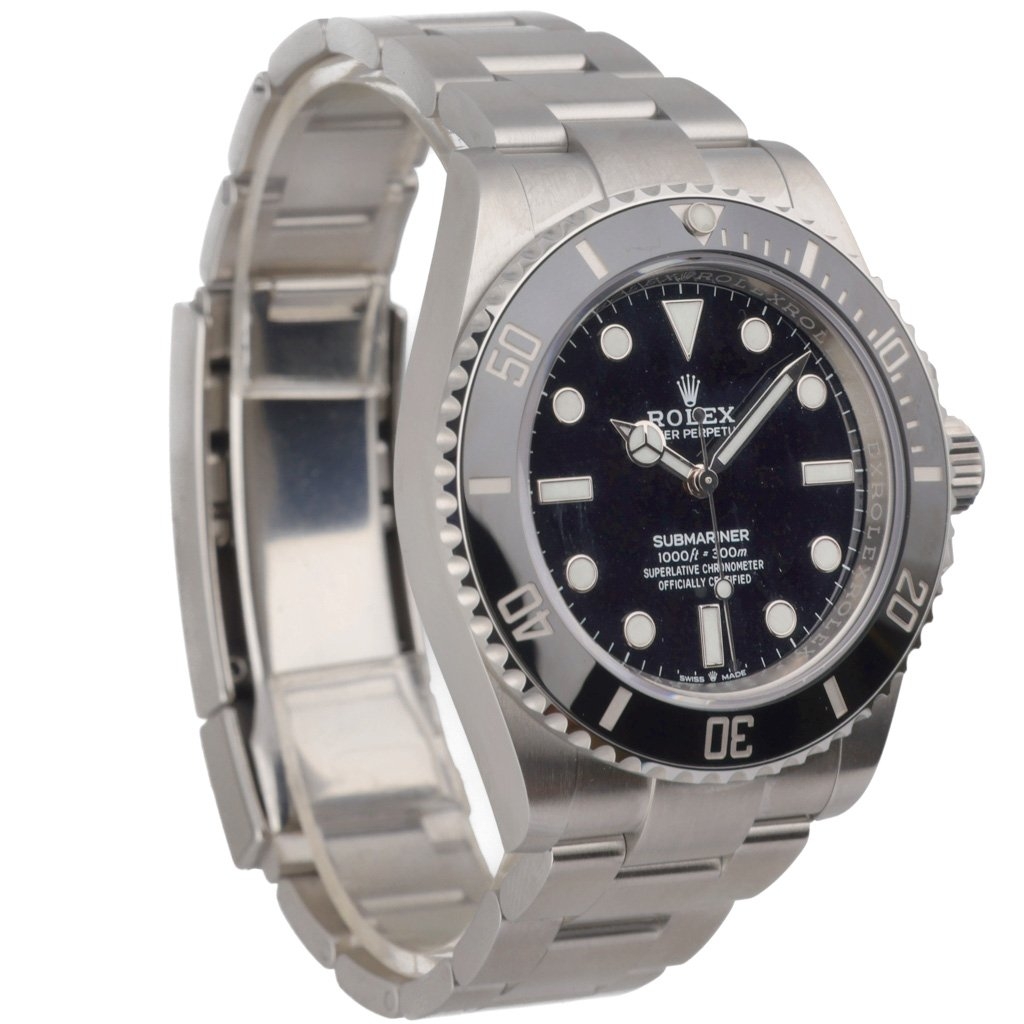 A Rolex Submariner 124060, released in 2021, epitomises the brand's legendary reputation for quality, durability, and timeless design. Crafted from stainless steel with a sleek black bezel and dial, this timepiece exudes elegance and versatility. With a case size of 41mm and powered by an automatic movement, it offers both a modern aesthetic and reliable performance.