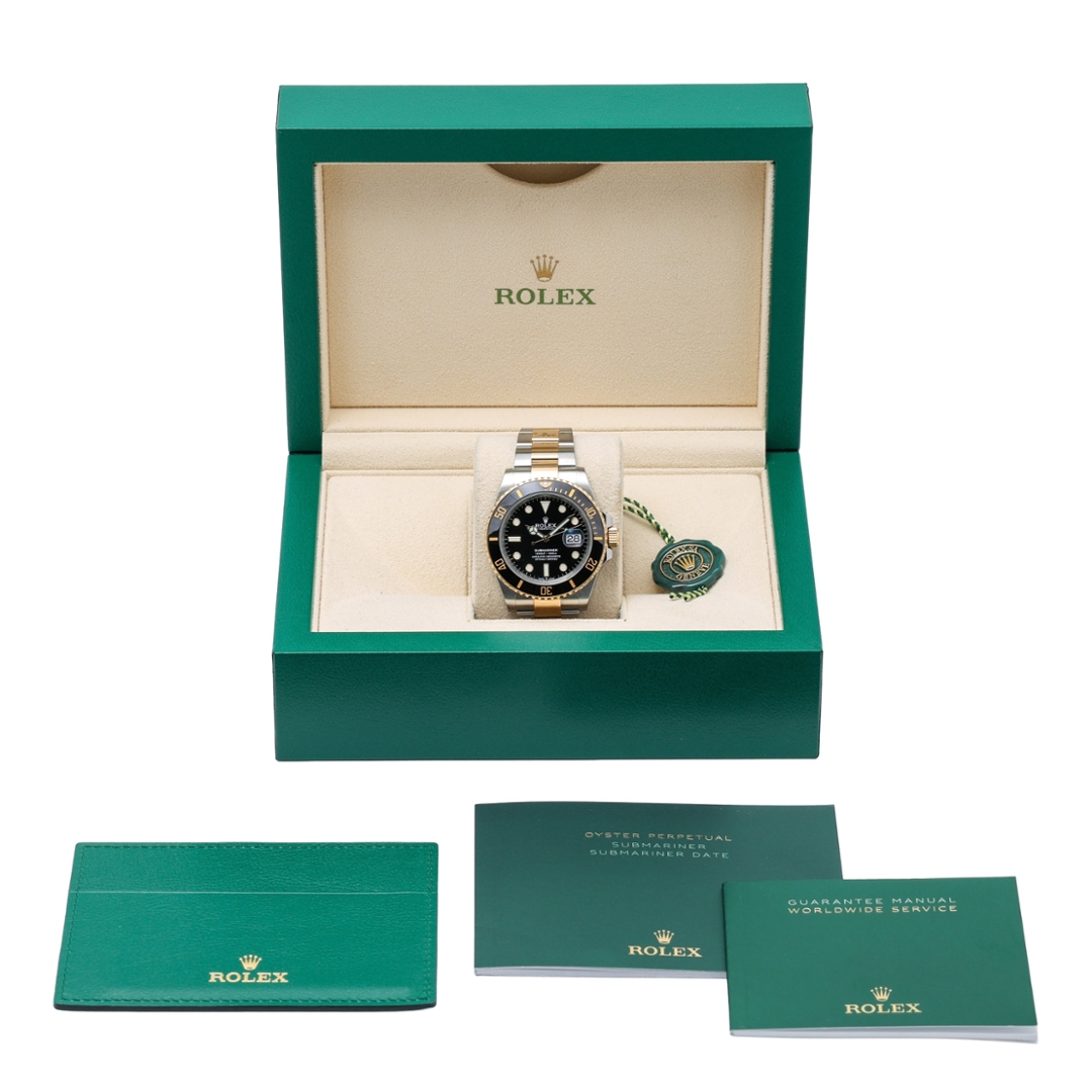 A Rolex Submariner Date 126613LN in Oystersteel and 18ct yellow gold is a perfect fusion of strength, luxury, and iconic design. Its 41mm Oyster case brings refined proportions while maintaining the legendary Submariner presence. The black dial and matching Cerachrom ceramic bezel insert provide sharp contrast against the warm tones of yellow gold, creating a look that is both striking and versatile. This model continues Rolex’s heritage as the ultimate professional dive watch, combining technical innovation with unmistakable prestige.