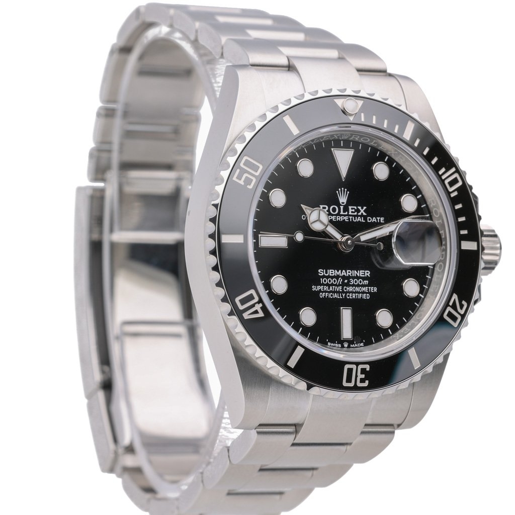 A Rolex Submariner 126610LN is a symbol of prestige and performance. This 2024 model (126610LN) embodies Rolex’s commitment to innovation and craftsmanship, offering a seamless blend of functionality and timeless elegance. Crafted from Oystersteel, a stainless steel renowned for strength and corrosion resistance, this 41-mm masterpiece exudes durability and refinement. The sleek black bezel and matching dial create a bold, unmistakable aesthetic that has defined luxury for generations.
