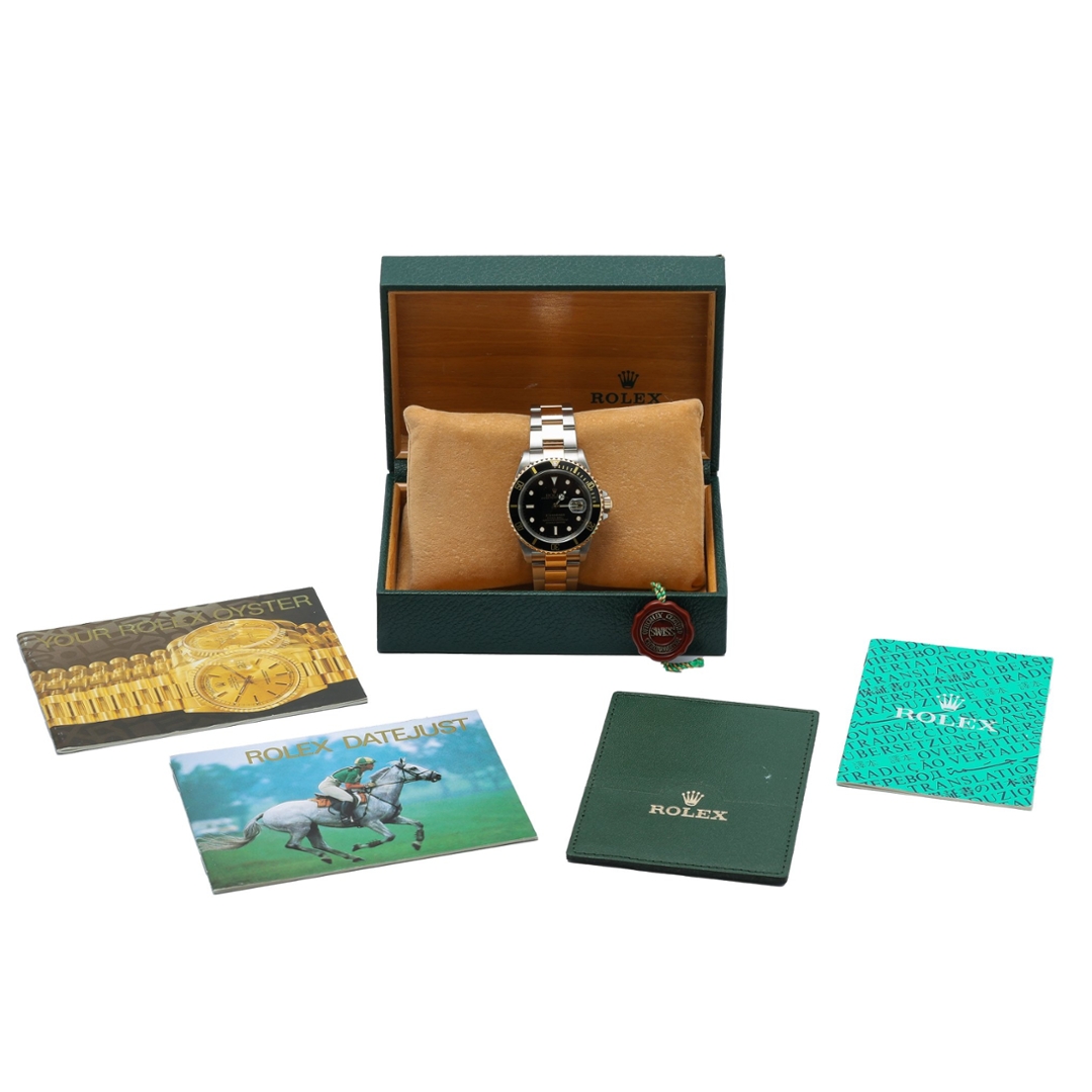 A Bi-Metal Rolex Submariner Watch, Stainless Steel and 18ct Yellow Gold with a Black Bezel & Dial