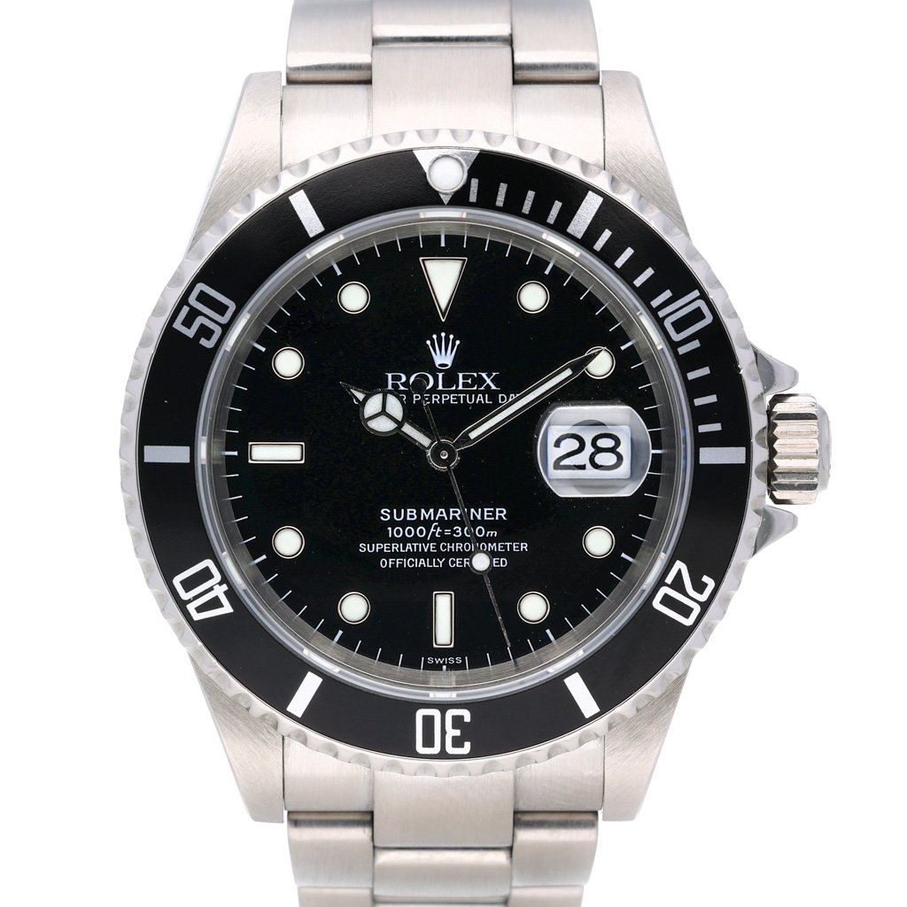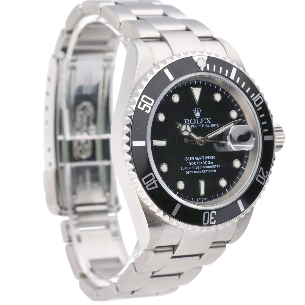 A Rolex Submariner 16610 represents one of the most recognisable and desirable references in the Submariner line, combining classic proportions with the trusted reliability of Rolex’s diving heritage. Crafted entirely from stainless steel, it carries the unmistakable black bezel and black dial configuration that collectors continually return to, admired for its clean balance of functionality and timeless sport aesthetics. The 40mm case offers the ideal Submariner silhouette, retaining the slimmer profile that enthusiasts appreciate from this era.
