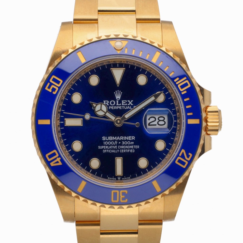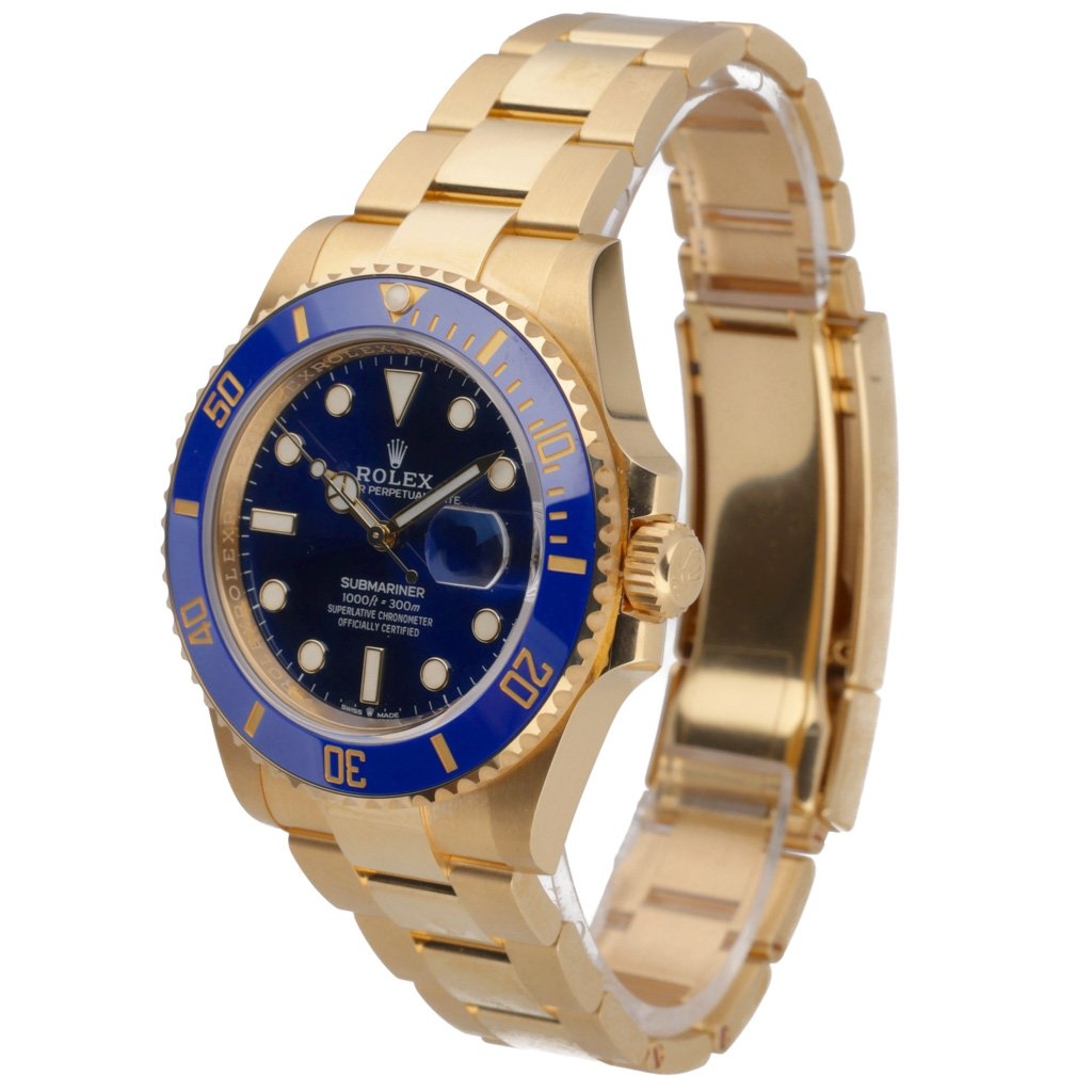 Designed as a luxurious evolution of Rolex’s iconic dive watch, the 41mm case delivers refined proportions and strong wrist presence. The combination of solid gold construction and vibrant blue detailing gives this model a distinctive character while retaining the robust functionality expected of the Submariner.
