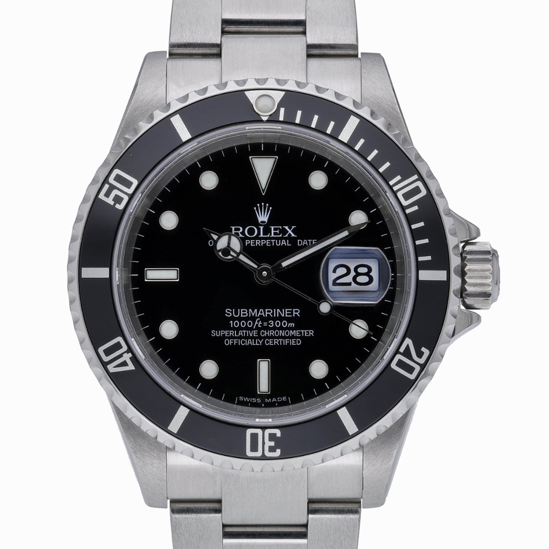 A Rolex Submariner 16610, crafted in 2007, is a quintessential symbol of luxury and precision in timepieces. This iconic model is housed in a robust 40mm stainless steel case, offering durability and elegance. The black bezel and dial provide a striking contrast, exuding a timeless aesthetic that seamlessly blends functionality with style.