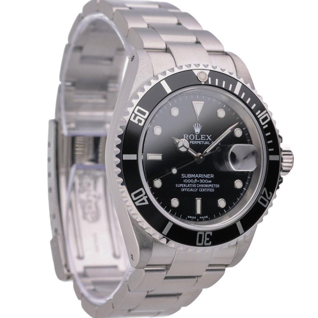 The Submariner 16610 is one of the most recognisable and enduring Rolex sports watches ever produced. Its balanced proportions, date functionality, and traditional aluminium bezel mark it as a true transitional reference between vintage and modern Submariners.
