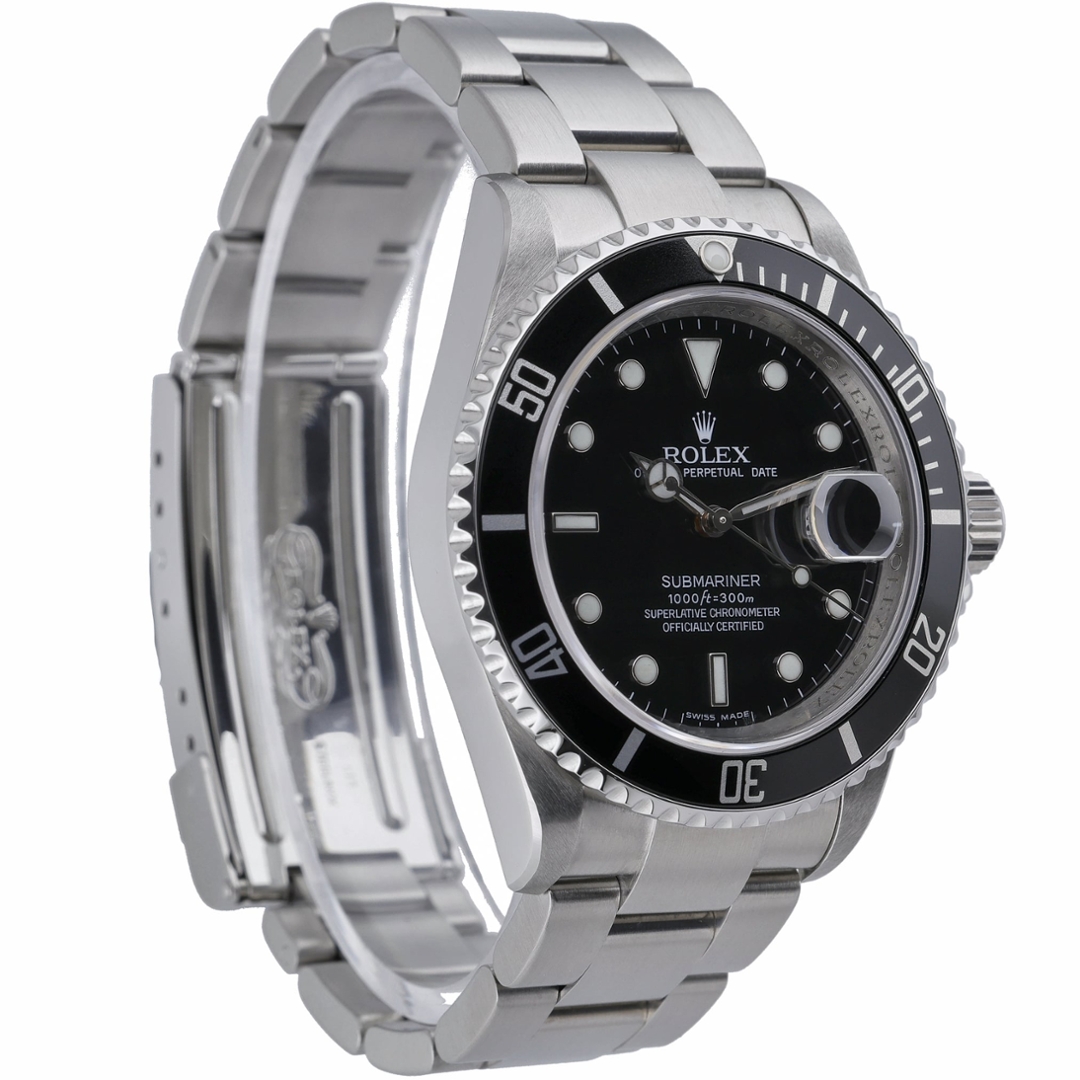 Supplied with original Rolex paperwork, presentation box and certification, this Submariner arrives as a complete and reassuring set. With its classic proportions, robust construction and trusted movement, the 16610 remains an appealing Submariner configuration.