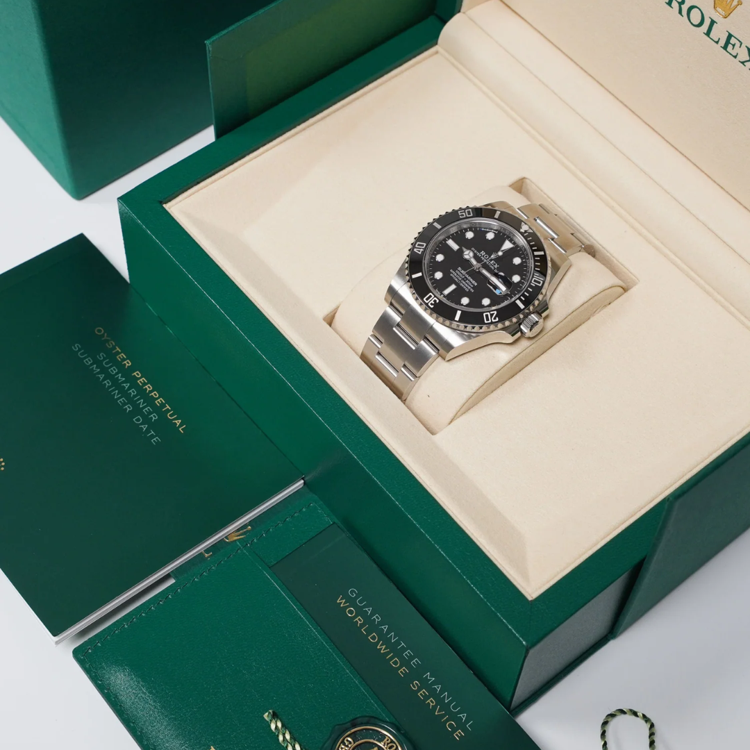 Presented in immaculate condition and accompanied by its original full set of paperwork, box, and certification, alongside Rolex manufacturer warranty coverage until 2030, this example represents a highly desirable modern Submariner. The 126610LN remains one of the most in-demand references in the Rolex lineup, offering a proven blend of durability, versatility, and long-term collectability.