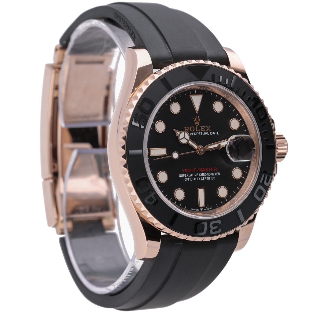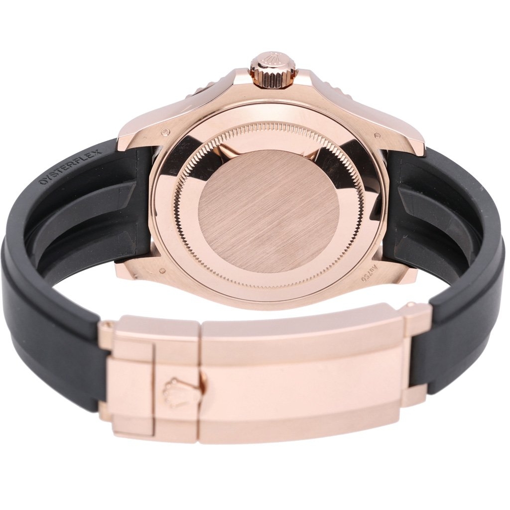 A Rolex Yacht-Master 40 Watch, Black Oysterflex Rubber Strap with an 18ct Rose Gold Case & Clasp on a Black Bezel & Dial.