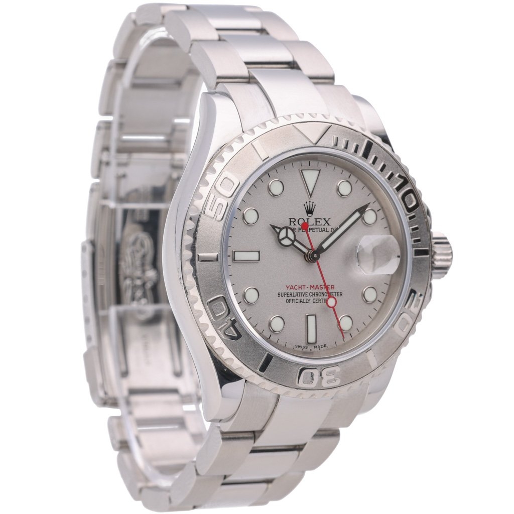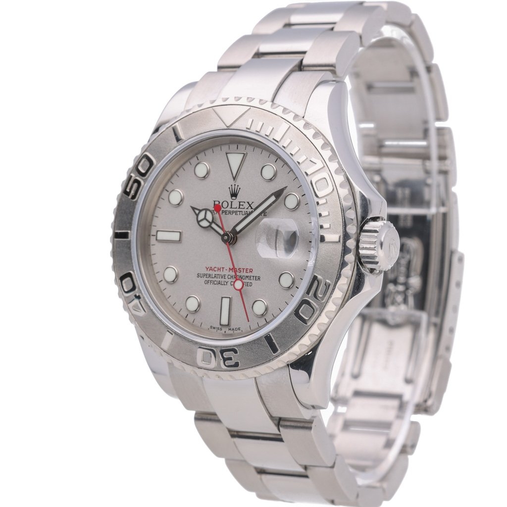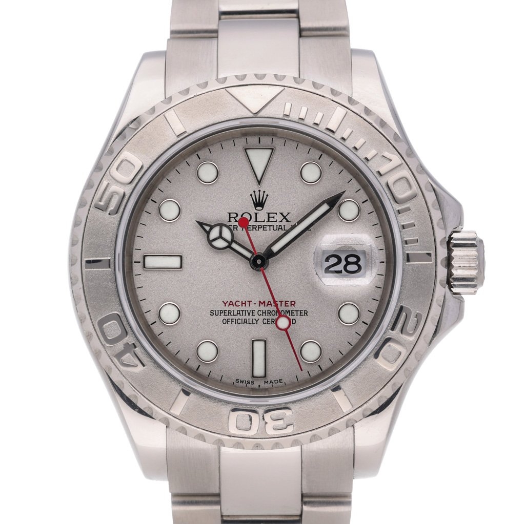 A Rolex Yacht-Master Watch, Stainless Steel with a Platinum Bezel on a Silver Dial