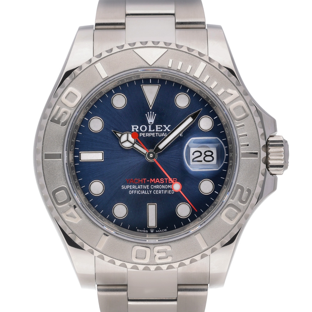 A Rolex Yacht-Master Watch, Stainless Steel with a Platinum Bezel on a Blue Dial.