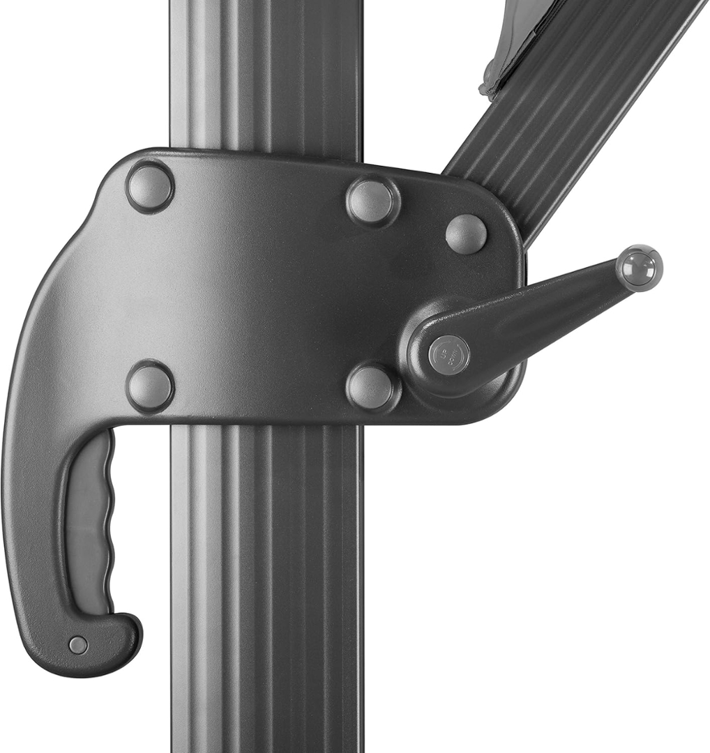 Engineered with a robust frame and durable canopy, this parasol offers reliable protection from the sun while maintaining stability in outdoor conditions. The adjustable arm mechanism enables flexible positioning, allowing you to angle the shade exactly where it is needed throughout the day. Its modern profile and clean lines make it a standout addition to any garden or terrace setting.