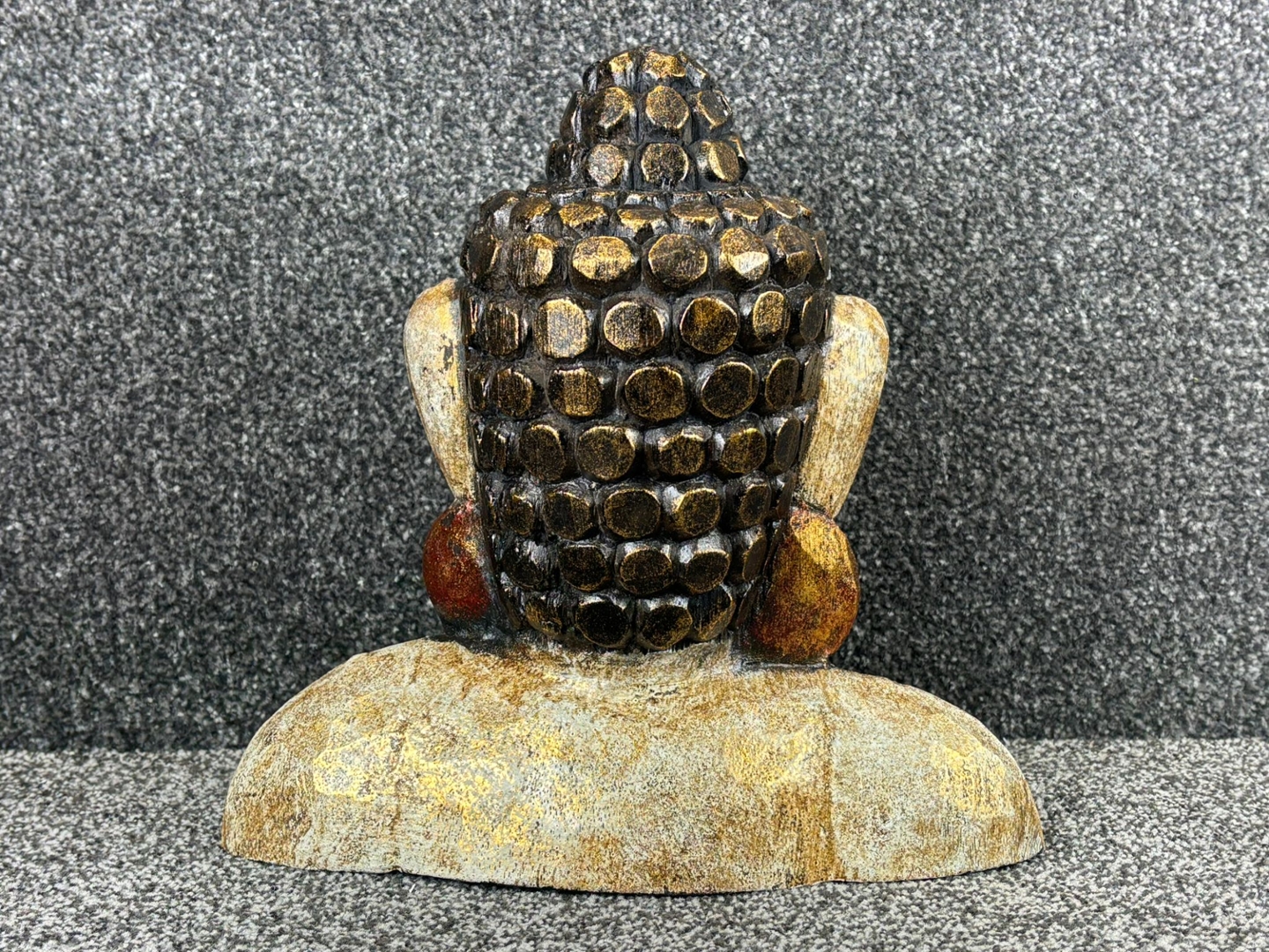 Perfect for display in a living space, meditation room, or garden area, this Buddha Head symbolises mindfulness, enlightenment, and inner harmony. Its refined craftsmanship and tranquil aura make it an inspiring addition to any collection, radiating peace and balance wherever it is placed.