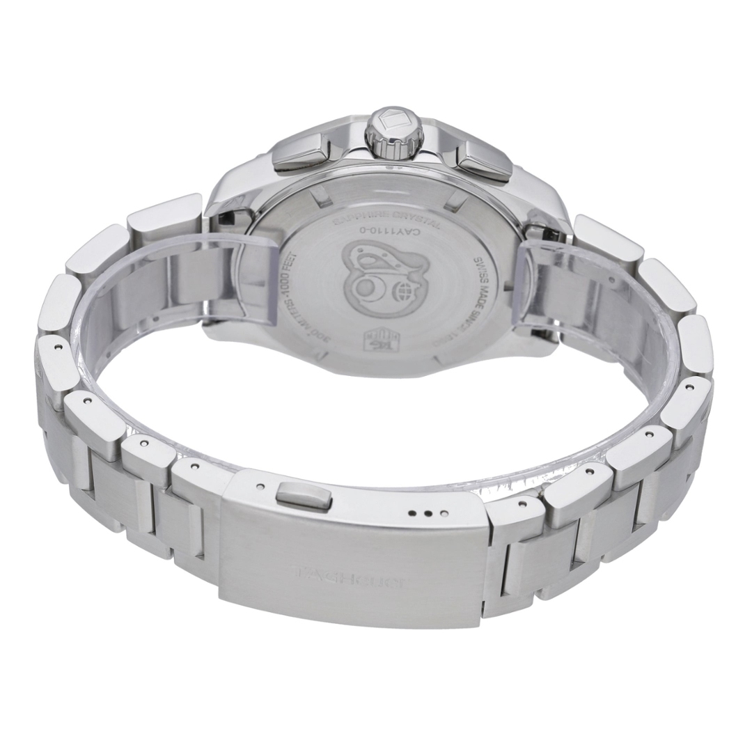 Powered by a precise Swiss quartz chronograph movement, this model offers dependable accuracy with minimal maintenance. The robust steel bracelet and solid case construction ensure durability, while the Aquaracer’s distinctive bezel design makes it instantly recognisable within the Tag Heuer line-up.