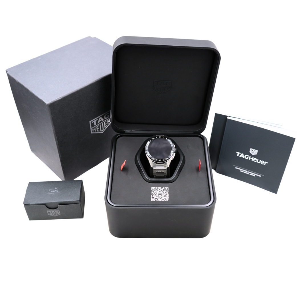 A Tag Heuer Connected Watch, Stainless Steel Case & Clasp and a Black Bezel.