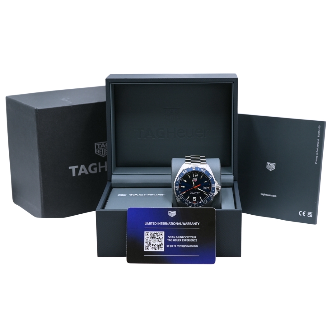 A Tag Heuer Formula 1 WAZ1010 is a dynamic timepiece that embodies the essence of high-performance motorsport, seamlessly blending precision engineering with bold design. Crafted from durable stainless steel, the 43mm case exudes a sporty look that reflects Tag Heuer’s racing legacy. The blue bezel and matching blue dial create a striking visual appeal, while the bold indices and luminous hands ensure excellent readability in any environment.