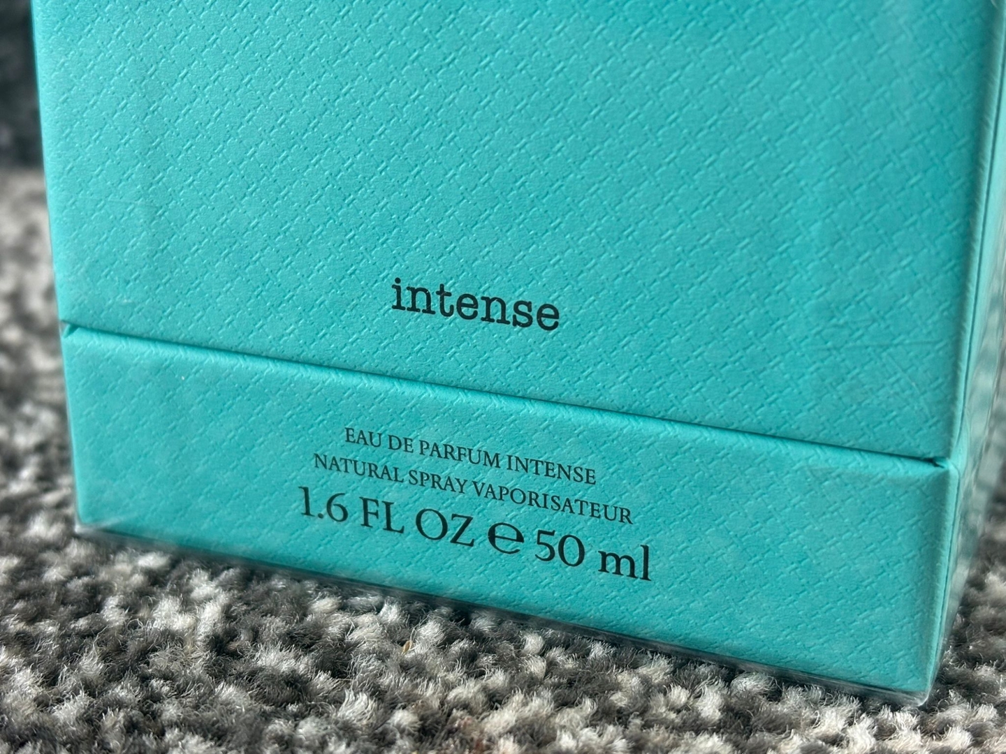 A 50ml bottle of Tiffany & Co Intense Eau De Parfum, presented in its original presentation box and offering a deeper, more expressive interpretation of the signature Tiffany fragrance. Elegant and refined, this scent reflects the timeless sophistication and contemporary luxury associated with the Tiffany & Co name.