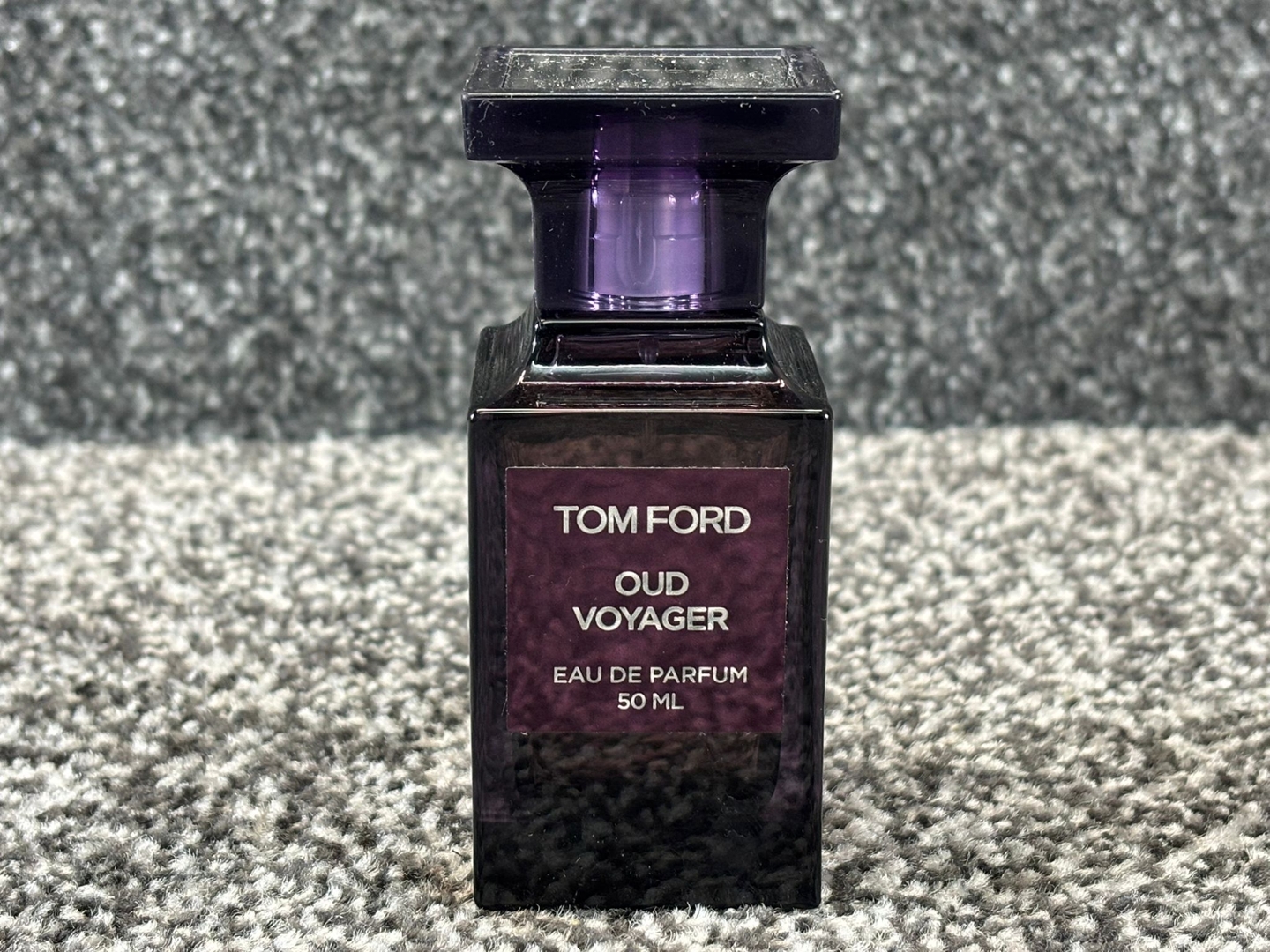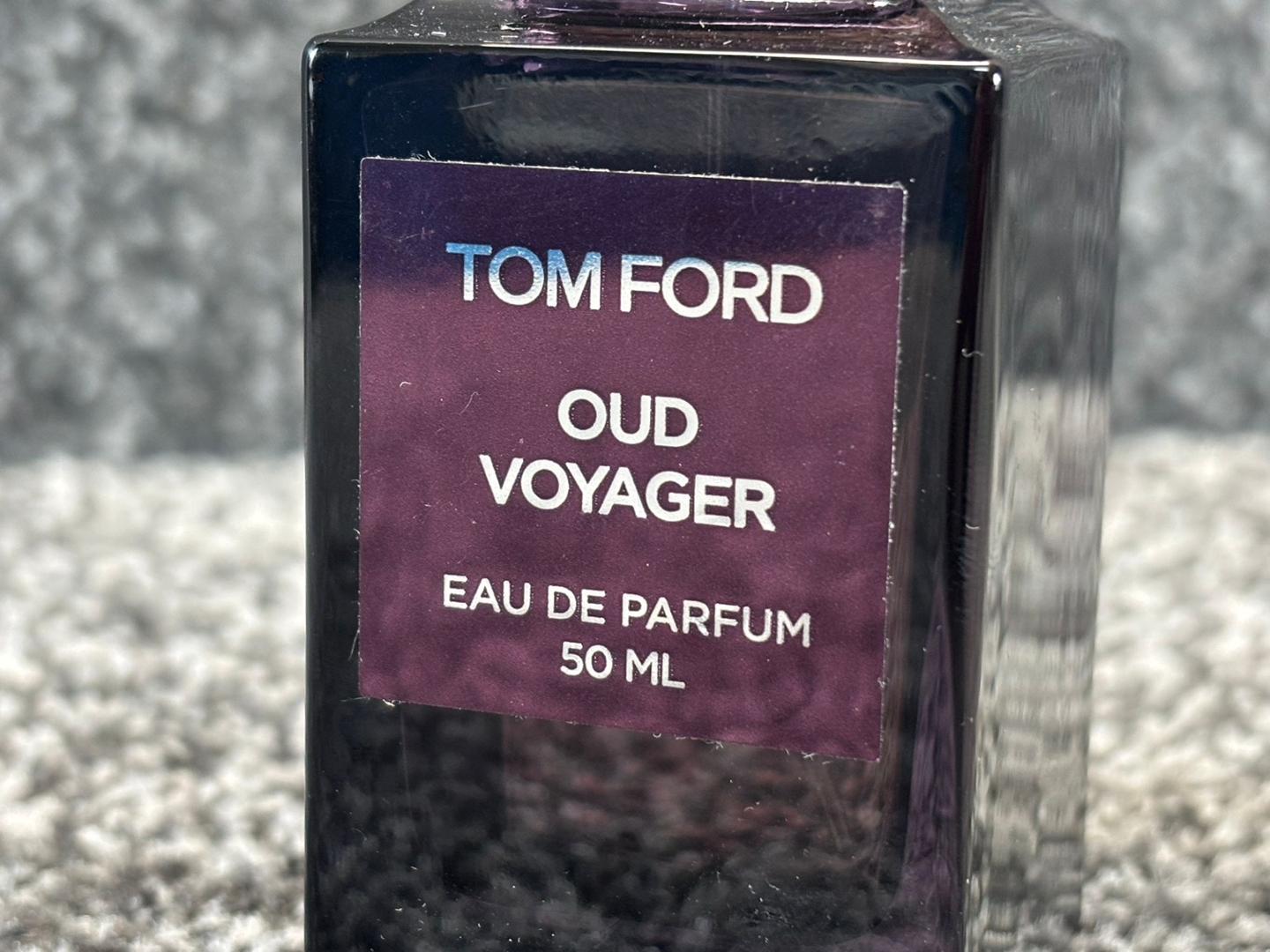 A 50ml bottle of Tom Ford Oud Voyager Eau De Parfum, a bold and
