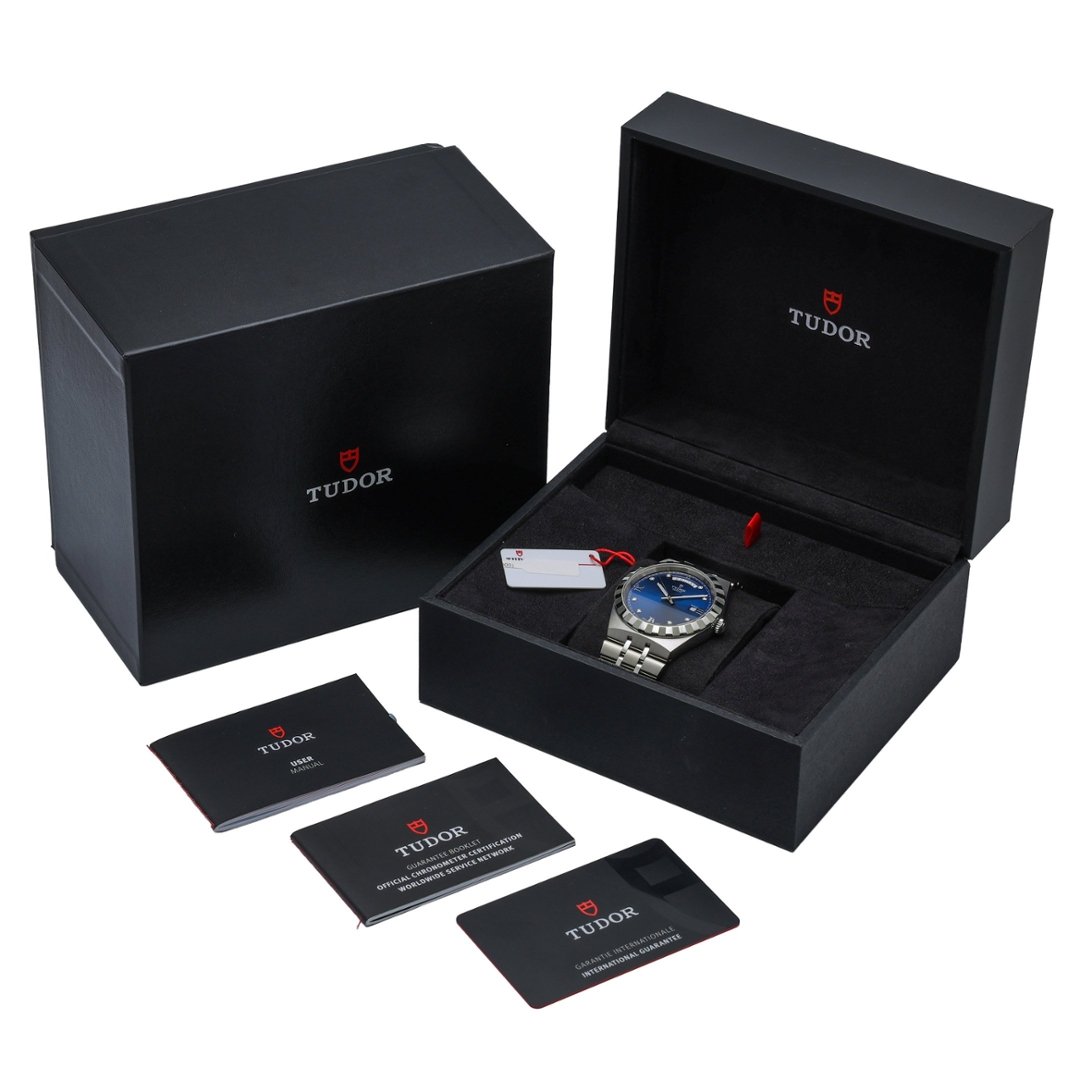 Dated 2025 and presented in immaculate condition, this example comes complete with its original Tudor box, paperwork, and certification. Still under Tudor’s manufacturer warranty until 2030, it offers remarkable peace of mind and value. Combining sharp design, superb craftsmanship, and everyday versatility, this Tudor Royal is a sophisticated statement piece suited to any occasion.